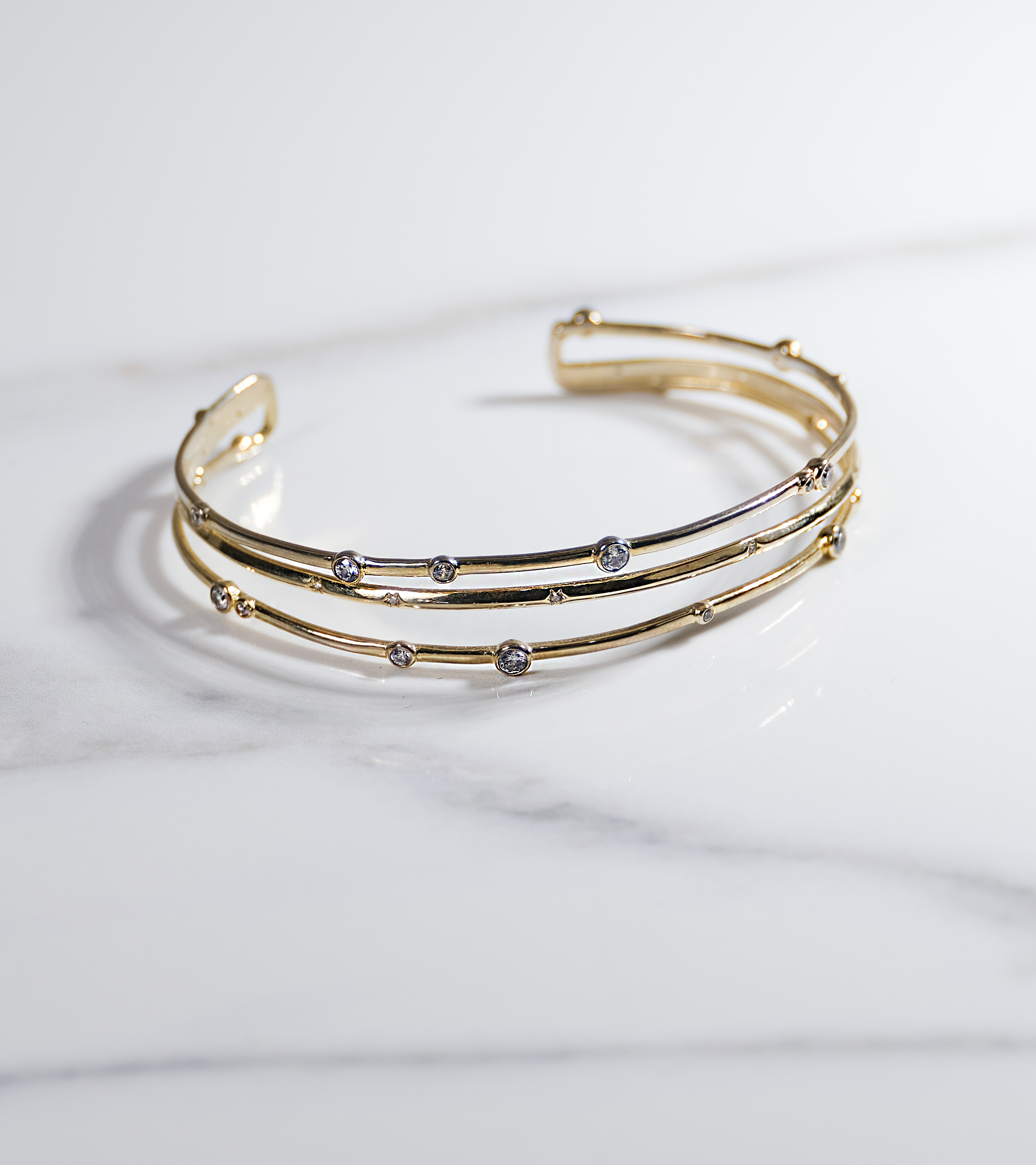 - Crafted in gold-plated silver with cubic zirconia, offers a glimpse into our design studio's experimentation.